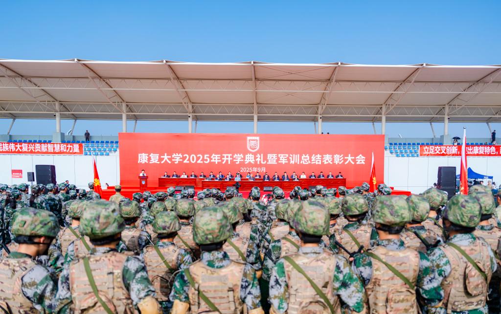 碧海蓝天,金秋送爽。9月14日上午,学校隆重举行2025年开学典礼暨军训总结表彰大会。中国工程院院士、校长董尔丹,校党委书记刘军,校领导姜宏、毕建国、刘奇迹、侯典峰、安琨,承训部队领导出席典礼。各部门、单位负责人,康复大学青岛中心医院、康复大学青岛医院、康复大学附属山东省康复中心党政负责同志,承训部队全体教官、新生家长代表、学校教职工代表,本科生和研究生代表,2025级全体新生参加典礼。校党委副书记、分管日常工作的副校长姜宏主持典礼。